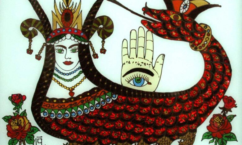 Bir de meşhur yılan saçlı Medusa vardır, o kadar kötüdür ki kendine bakan insanları, özellikle de erkekleri taşa çevirir. Mitolojik anlatılar incelendiğinde bir çok benzer öyküyle karşılaşırız. Bu mitolojik hikayeler içinde Kürtlerin yakından bildiği bir yılan kadın vardır. Kürt mitolojisinde yarı kadın yarı yılan olan bu kadın Şahmaran’dır. Adı yılanların şahı anlamına gelir. Mezopotamya masallarında, hikâyelerinde akıllı ve iyicil olarak tanımlanan bellerinden aşağısı yılan, üstü ise insan şeklindeki maran adı verilen, doğaüstü yaratıkların başında bulunan ve hiç yaşlanmayan, ölünce ruhunun kızına geçtiğine inanılan varlıktır. Kürt toplumunda özel bir yeri vardır Şahmaran’ın. Bir çok mitolojinin aksine kötü, lanetli olarak anlatılmaz. Bir çok Kürt masalında, bilge, şifacı, doğanın dengesini koruyan, merhametli olarak anlatılır. Halk tarafından sevilir Şahmaran hikayeleri, bir çok evin duvarında Şahmaran’ın resimleri vardır. Şahmaran resimleri camlara, kumaşlara, kağıtlara boya ile nakış ile işlenerek Kürt kültürünün bir parçası olarak zanaatçılık işlerinde de yerini alır. Bu coğrafyanın sembollerinden biri olarak bilinir.